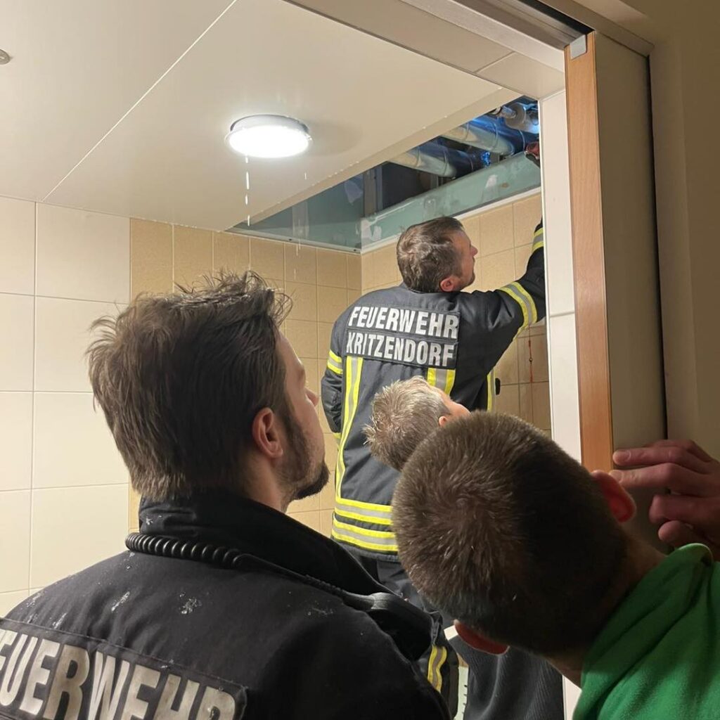 Wir haben das Wasser umgehend abgedreht, eine weitere Ausbreitung verhindert und die Decken geöffnet, damit es kontrolliert abfließen kann. Weiters wurde alles so vorbereitet, dass der Installateur das Problem rasch beheben kann.